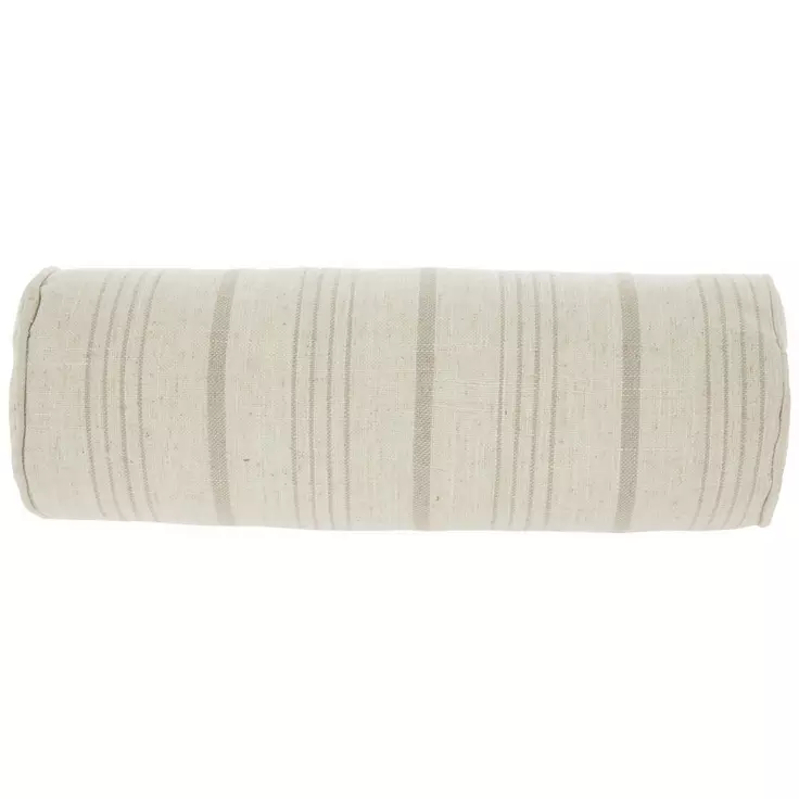Upgrade your home’s French country aesthetic with this French Striped Bolster Pillow! This cylindrical pillow features a white woven exterior decorated with beige stripes. Inside is a firm polyester fill that makes it as comfy as it is homey. Place this pillow on your bed in front of other pillows to add a charming rustic touch to your bedroom decor.